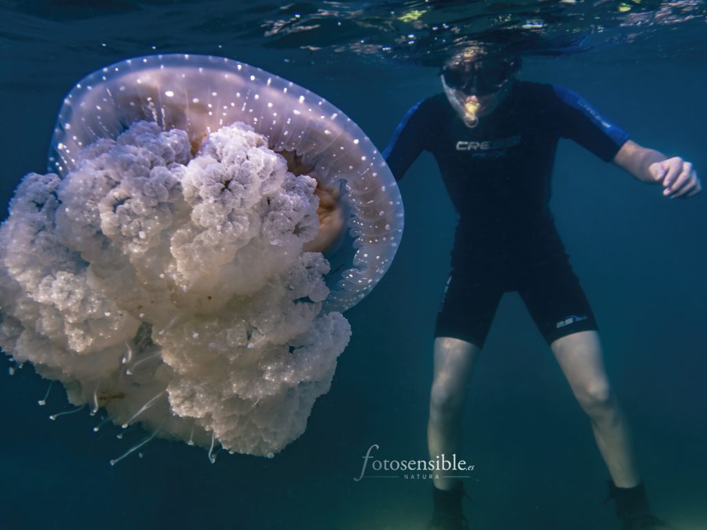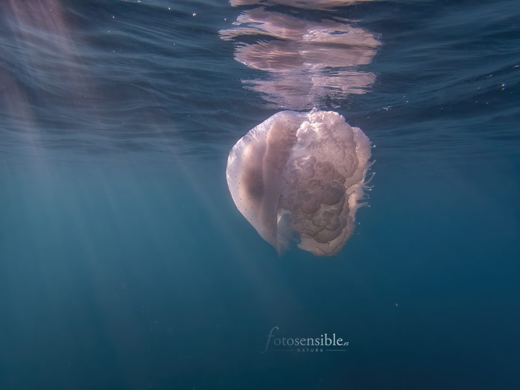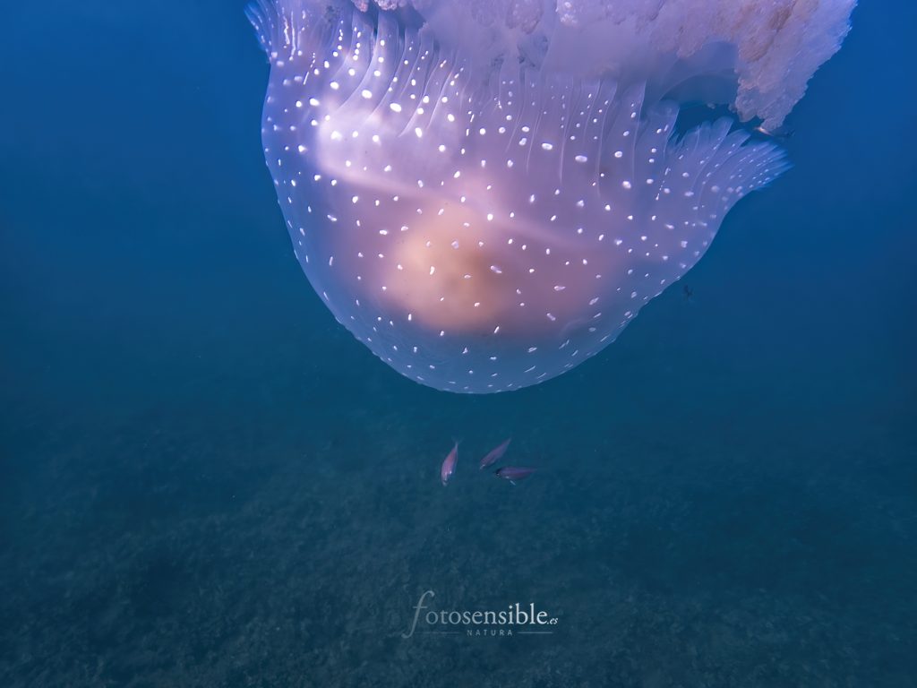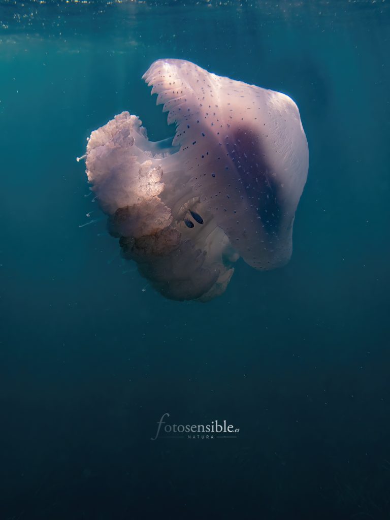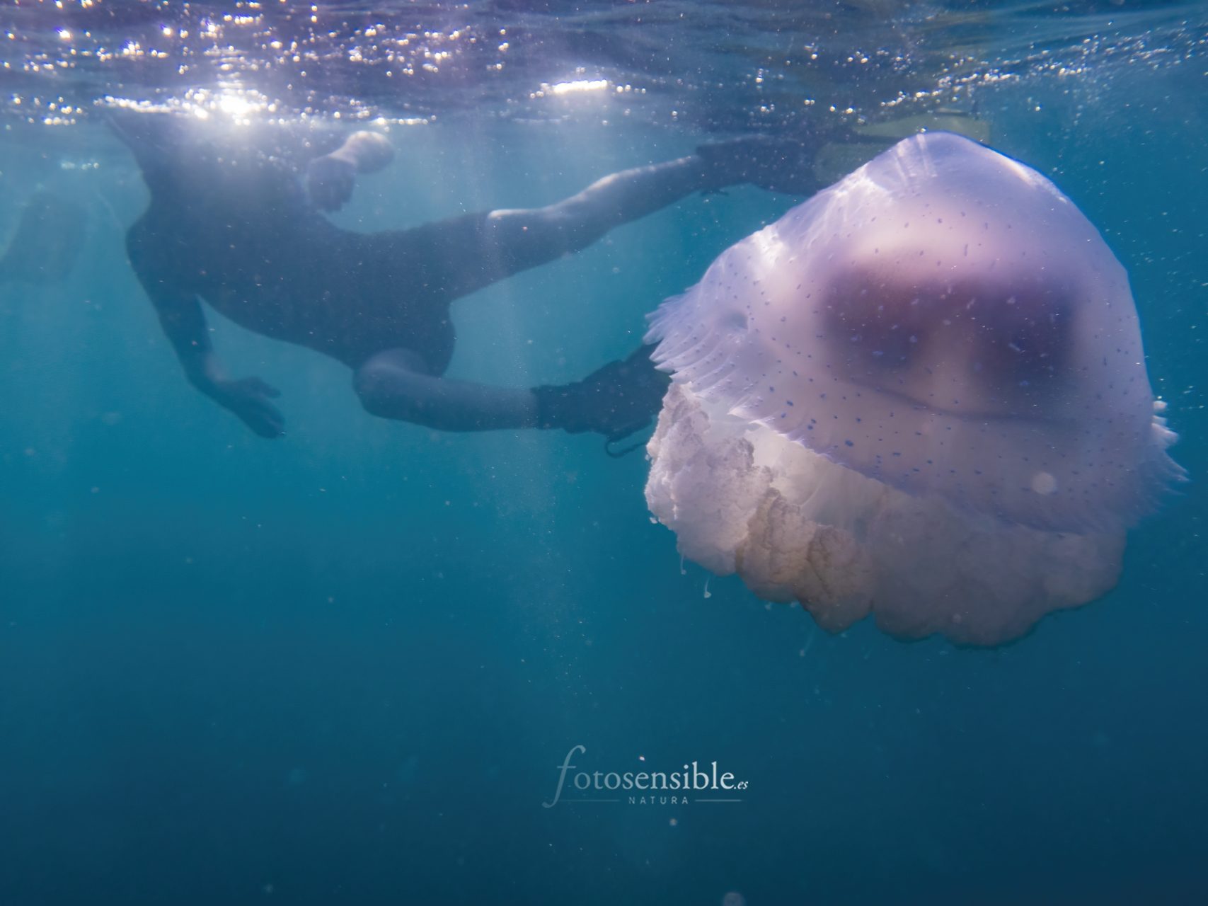 Cuando era pequeño, las medusas me producían auténtico pánico. En las playas era costumbre sacarlas del agua y enterrarlas en la arena (costumbre que aún hoy puede verse, por desgracia). Ahora me considero muy afortunado cuando veo una de cerca y la fotografío (con las debidas precauciones), siempre que no se trate de alguna especie peligrosa como alguna cubomedusa o la temida Carabela portuguesa (que en realidad no es una medusa como tal), que también se ha introducido en el Mediterráneo, procedente del Atlántico.