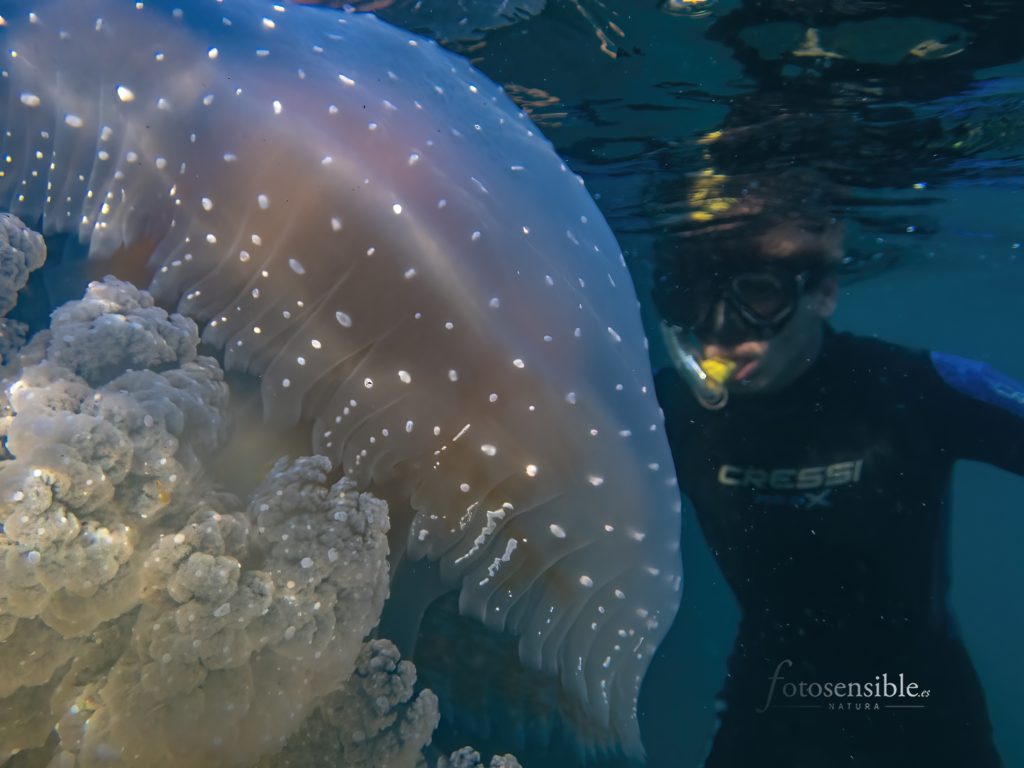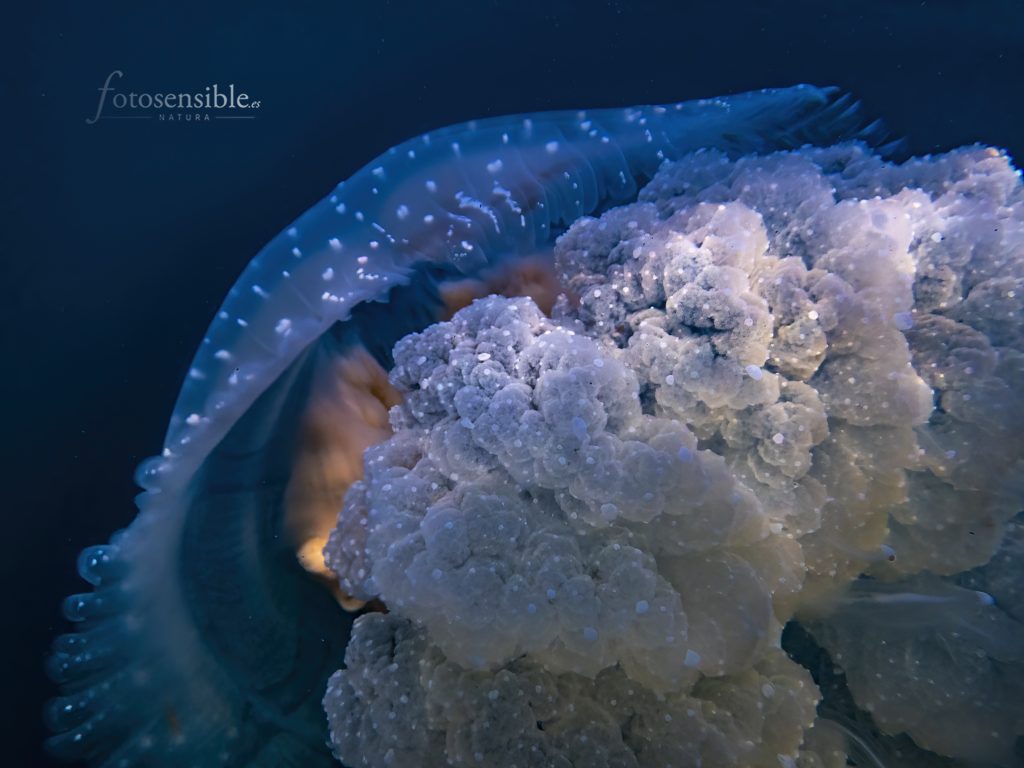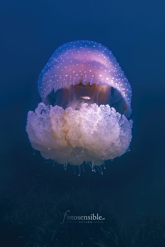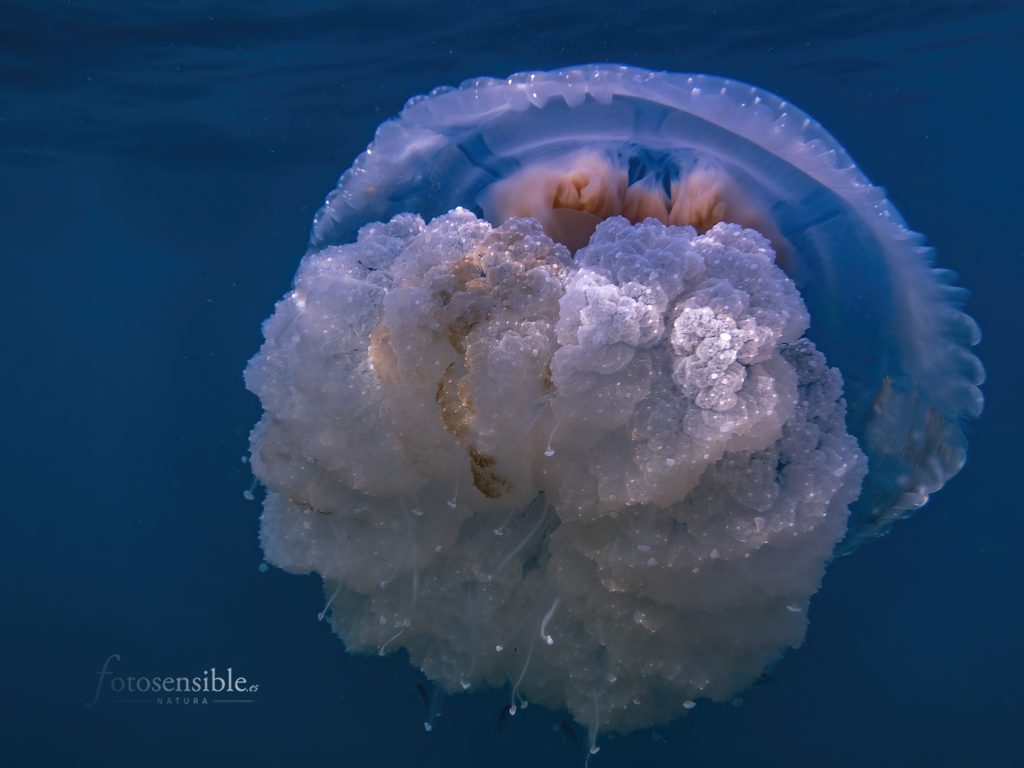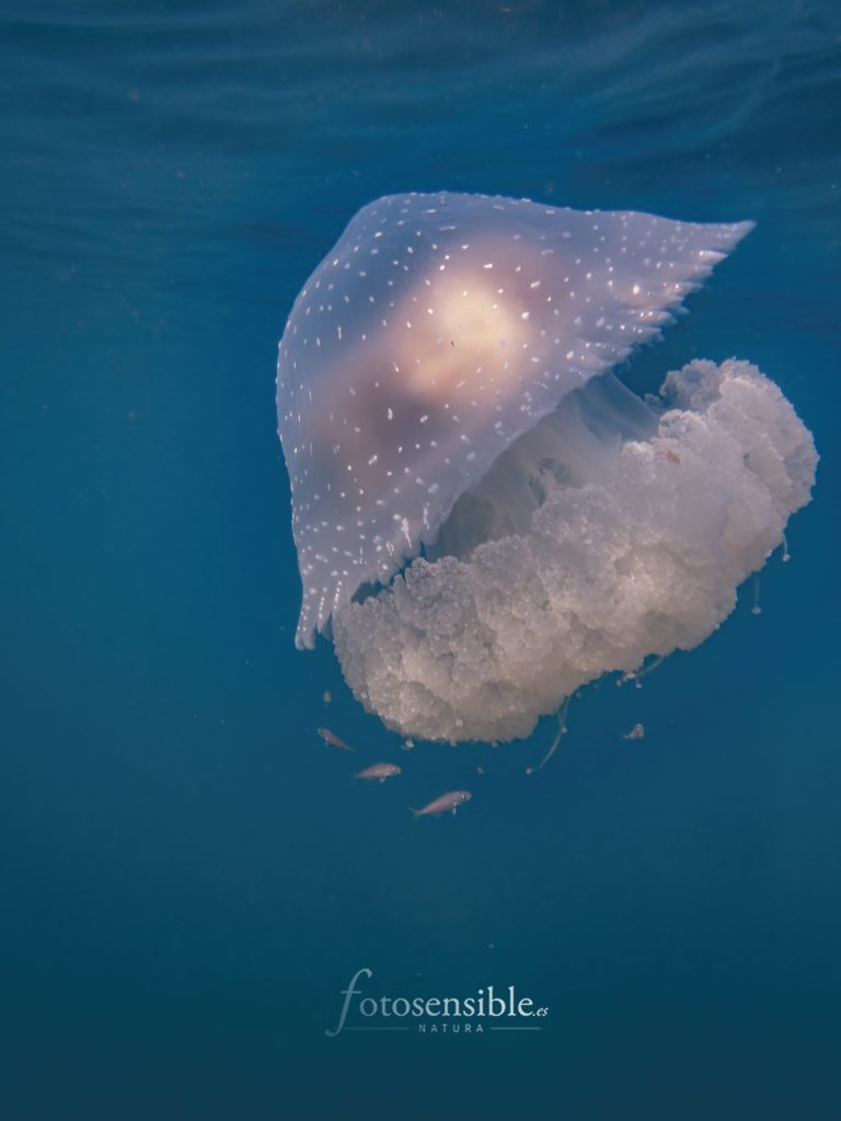 Cuando era pequeño, las medusas me producían auténtico pánico. En las playas era costumbre sacarlas del agua y enterrarlas en la arena (costumbre que aún hoy puede verse, por desgracia). Ahora me considero muy afortunado cuando veo una de cerca y la fotografío (con las debidas precauciones), siempre que no se trate de alguna especie peligrosa como alguna cubomedusa o la temida Carabela portuguesa (que en realidad no es una medusa como tal), que también se ha introducido en el Mediterráneo, procedente del Atlántico.
