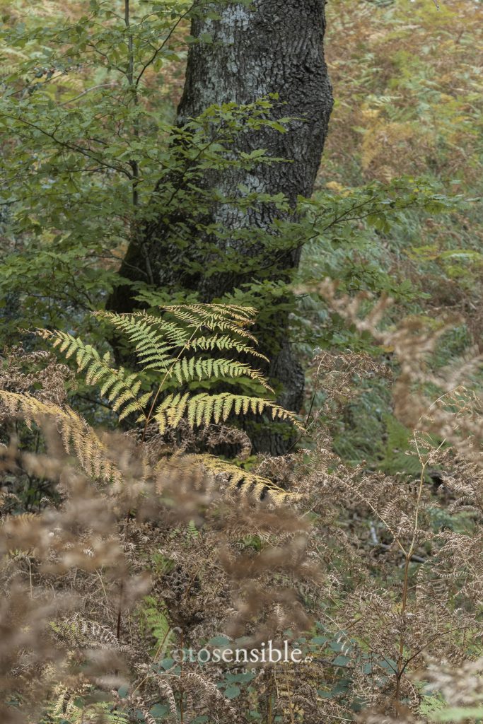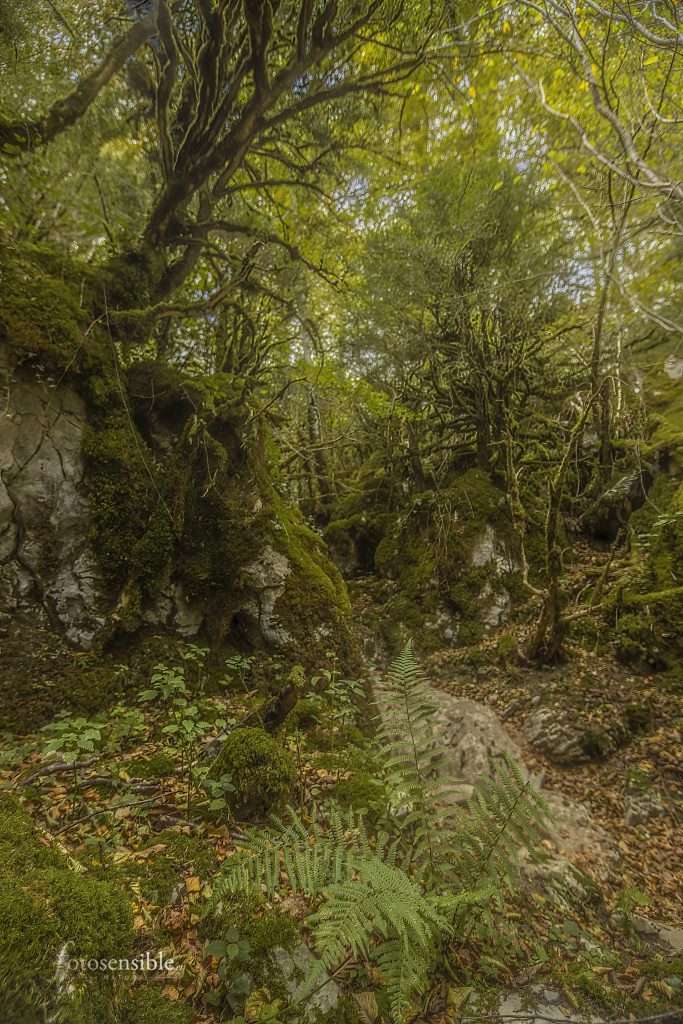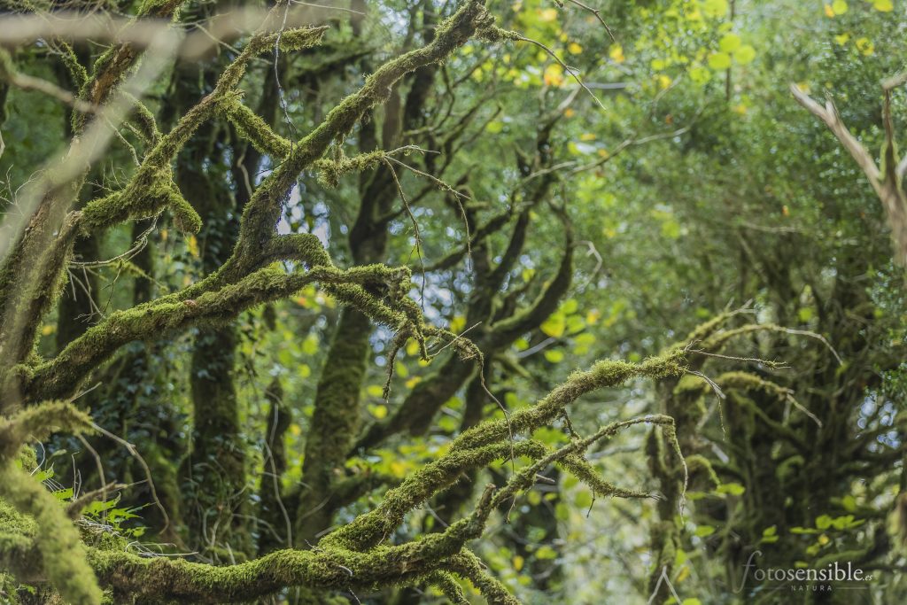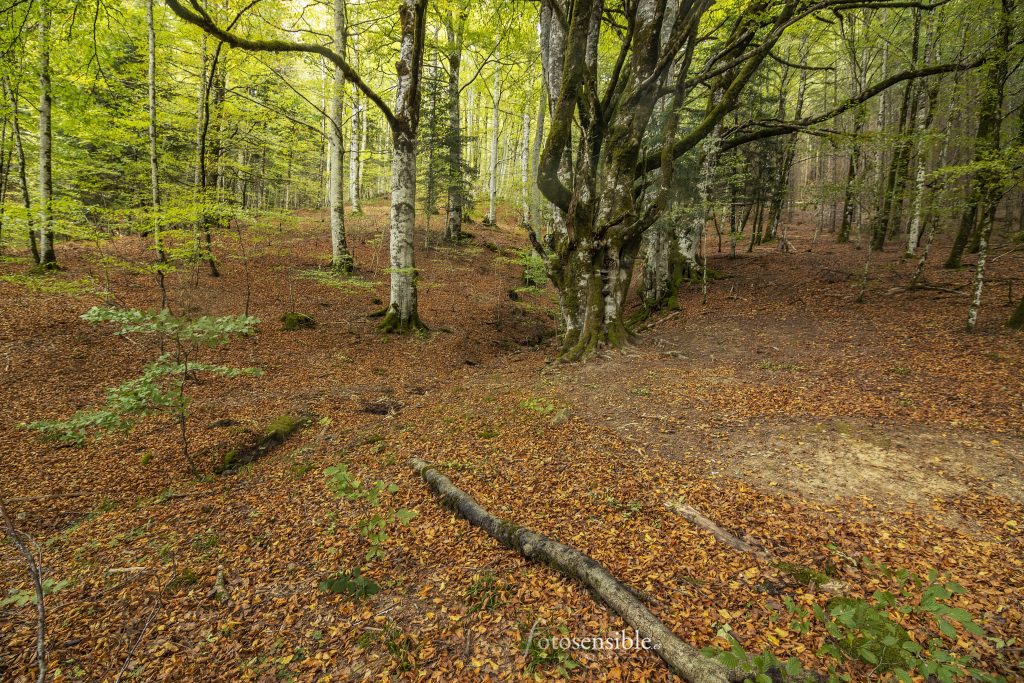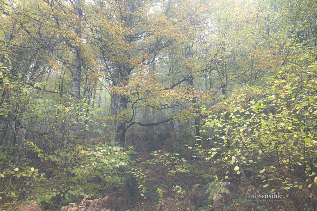 El luminoso de la carretera me ponía sobre aviso: “PELIGRO DE INCENDIOS”. “Estará desactualizado, desfasado” —pensaba yo —. Sin embargo al adentrarme en la selva, mis peores temores se hacían realidad: mis botas, lejos de humedecerse o embarrarse, levantaban polvo a mi paso; el mismo que desprendía el musgo de las cortezas de los árboles cuando las rozaba. Para quien ha conocido y fotografiado otoños “de verdad”, este ambiente, huérfano del murmullo de los saltos de agua, del envolvente olor del bosque húmedo, con temperaturas casi veraniegas y con el color de una primavera apagada, era impropio, incómodo, asfixiante… casi amenazante.