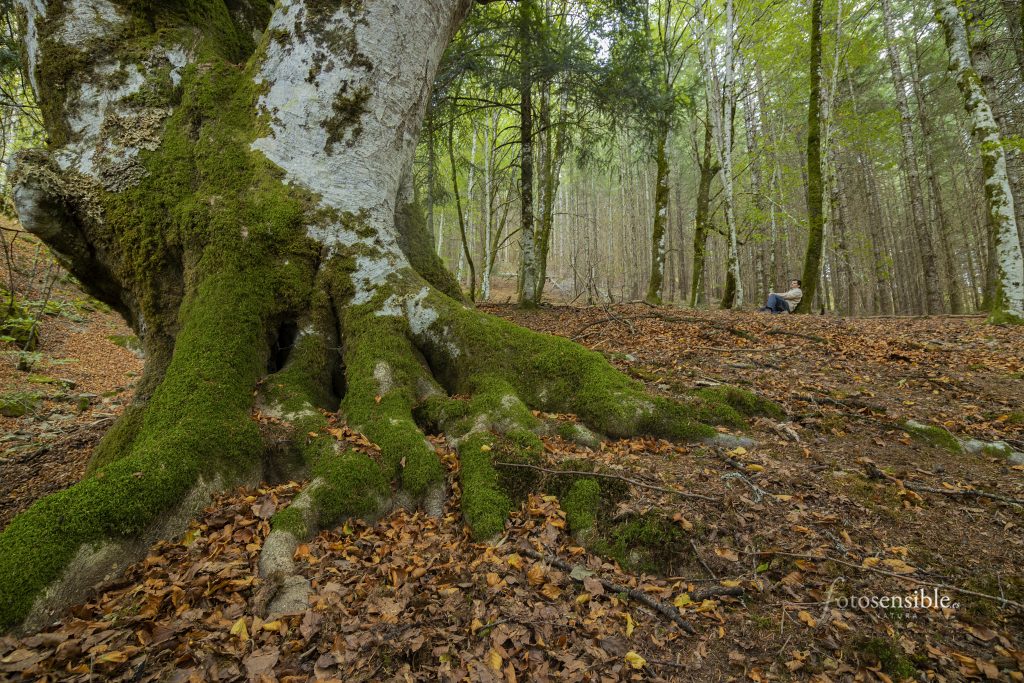 El bosque me transmite una sensación extraña. Una soledad acompañada en la que no necesito mucho más. Las enormes hayas de tronco gris y porte melancólico llevan mucho tiempo hundiendo sus pies nudosos en la tierra; son de esos seres con los que puedes estar cómodo sin necesidad de decir nada. No quieren hacerte pequeño… es que directamente, a su lado, lo eres.