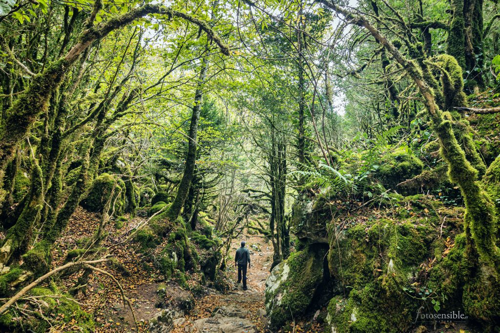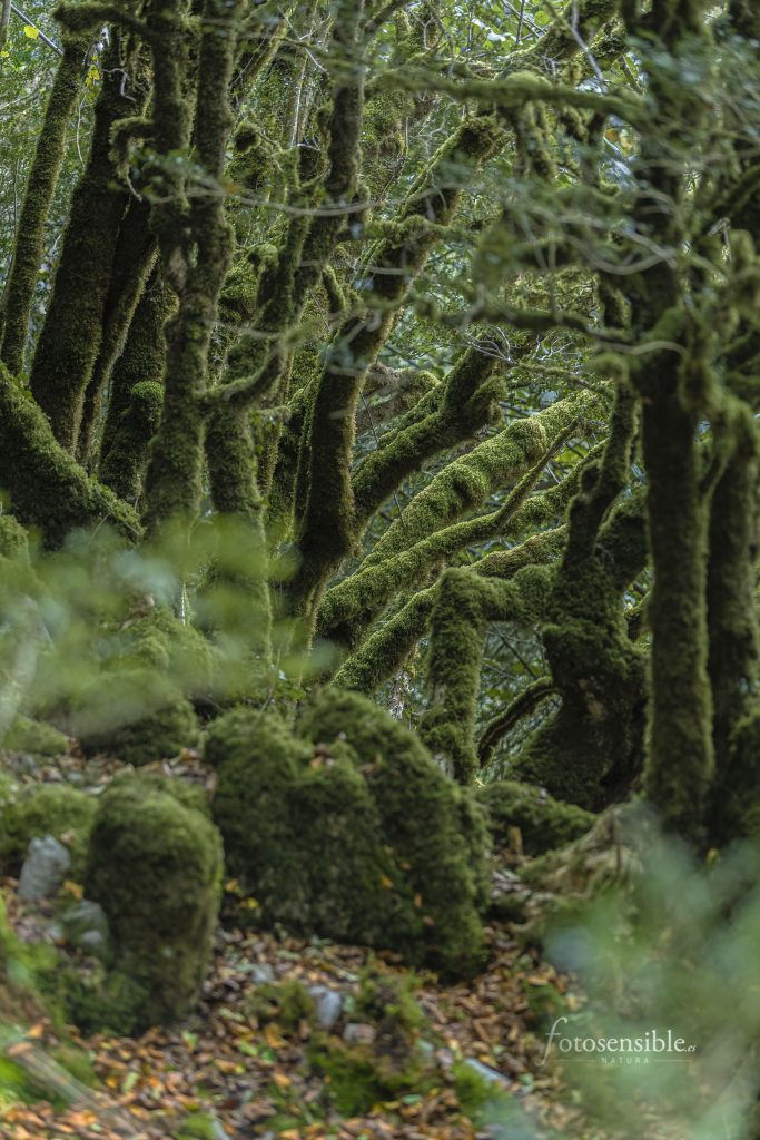 Quizá esta sensación de inquietud e incomodidad azotaba mi mente y retorcía más de lo que ya estaban los troncos nudosos del bosque encantado, totalmente tapizados de musgo. Como dedos afilados, daban la sensación de querer atraparte y asfixiarte con una belleza peligrosa.