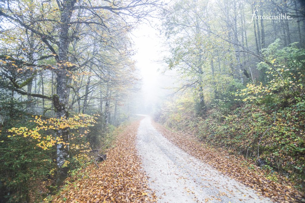 A punto ya de dejar Irati, con la sensación de haber visitado una impresionante catedral, pero con andamios, el suelo levantado y pintada de grafittis, el último día la naturaleza quiso dejarme un atisbo de lo que puede ser el otoño en estos valles. La mañana se desperezaba con un fino manto de niebla, que no es otra cosa que vapor de agua suspendido.