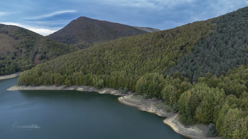 En el corazón de la selva de Irati se encuentra el embalse de Irabia, cuya raíz etimológica sigue rindiendo homenaje al helecho. En las laderas que lo custodian, cuyas orillas descarnadas delatan la escasez de agua, lenguas de abetos avanzan y se incrustan como un glaciar entre el hayedo. El color debería distinguirlas pero las altas temperaturas, la falta de agua… han hecho que este año el verde permanezca aún en las hojas y nos prive del espectáculo visual de una segunda primavera llena de colores.
