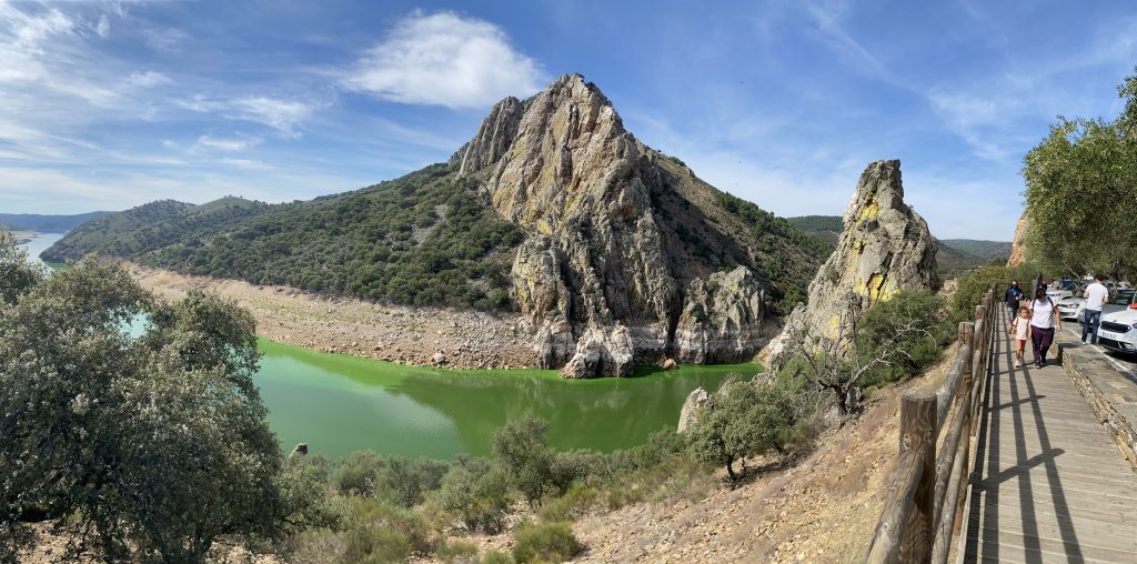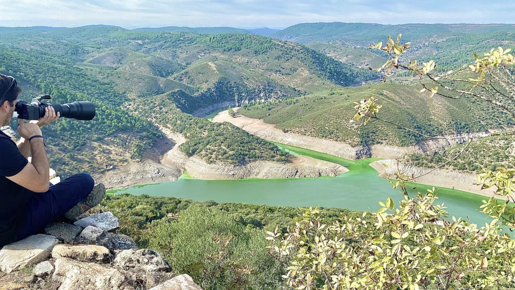 Tras una subida no muy exigente, se puede disfrutar de una espectacular panorámica desde lo alto del “Castillo de Monfragüe“, donde es posible ver volar a los buitres a la misma altura de los ojos, o incluso por debajo. La sensación es totalmente increíble…