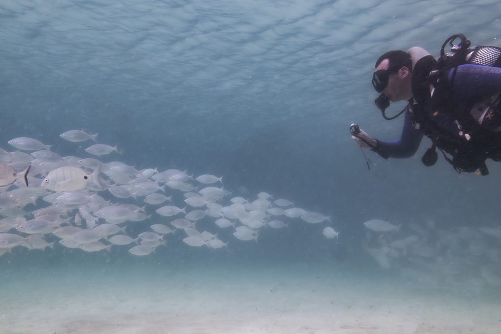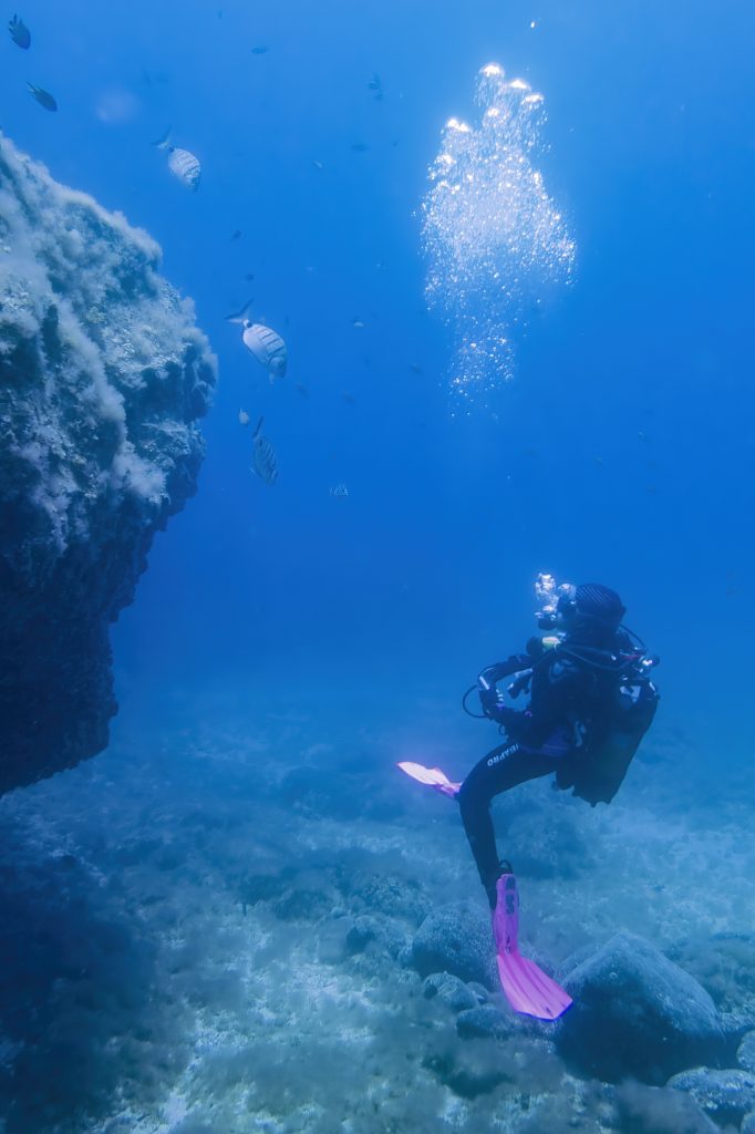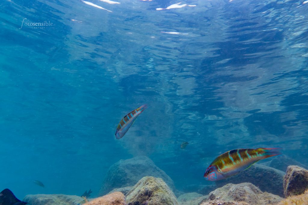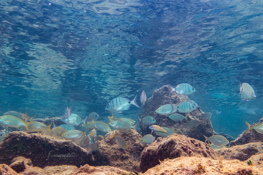 Ahora toca disfrutar del entorno y de la maravillosa vida que hay ahí abajo. Las diferencias con el snorkel van más allá de la posibilidad de respirar sin subir a la superficie cada dos por tres… cuando buceas, eres parte del mar y los animales así lo entienden. Lejos de asustarse de tu presencia, te ignoran o incluso sienten curiosidad por ti y te acompañan… es entonces cuando te sientes un verdadero privilegiado por compartir ese espacio/tiempo mágico.