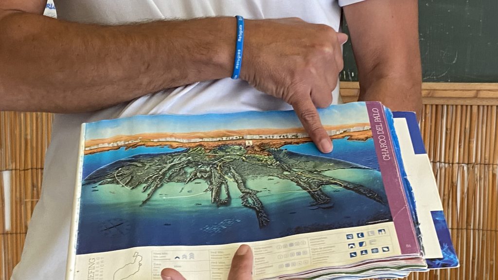 Y por fin llega el momento de la inmersión… el instructor explica el “briefing” de la “operación” que llevaremos a cabo bajo el agua. En ese momento te sientes parte de una banda de atracadores que planean el golpe del siglo con toda minuciosidad. Piensas: ¿y yo voy a estar ahí abajo siguiendo ese ritmo?
