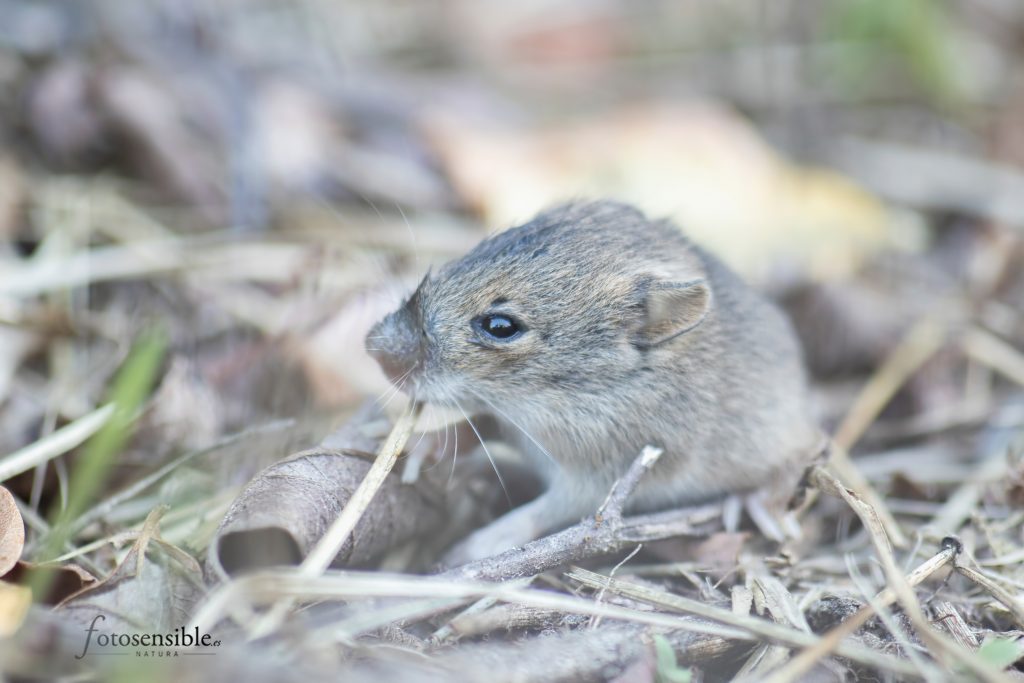 Cría de lirón gris, mientras era transportada hacia otra madriguera por su madre