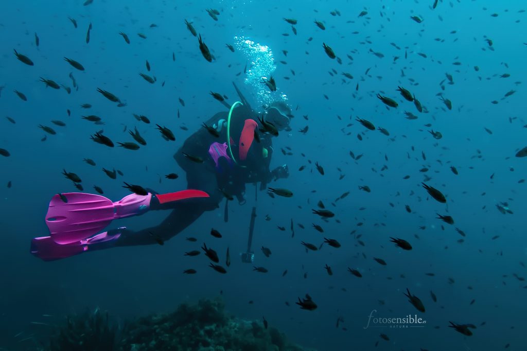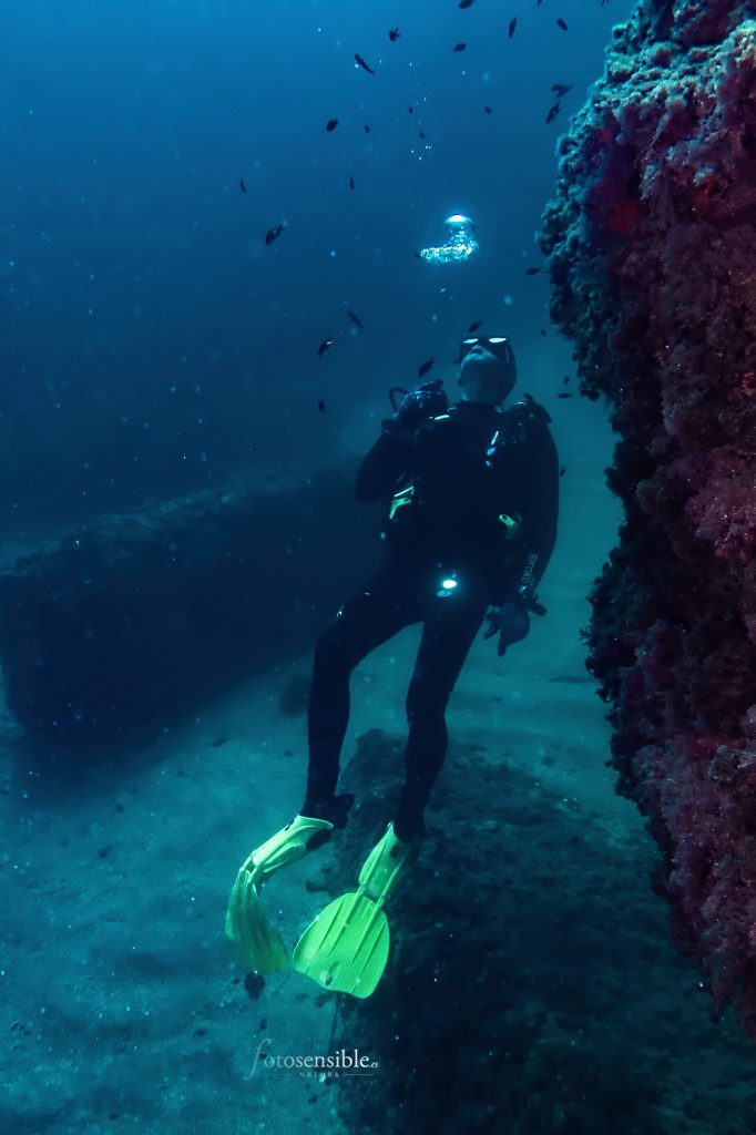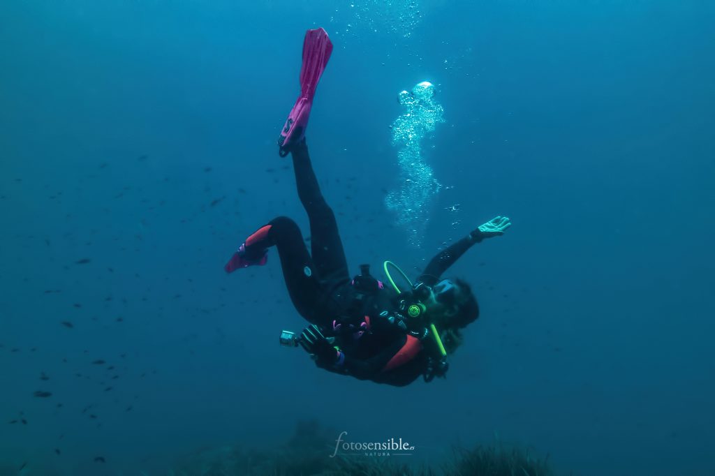 En mi primera inmersión con botella en mar abierto he alcanzado ese estado de felicidad próximo a la borrachera, pero de manera consciente y deliberada. Esa punzada que provoca que tu cuerpo se vuelva de repente dos tallas más pequeño que tu corazón, que busca hacerse hueco en tu garganta y acaba por empañarte un poco los ojos (sí, incluso bajo el agua).