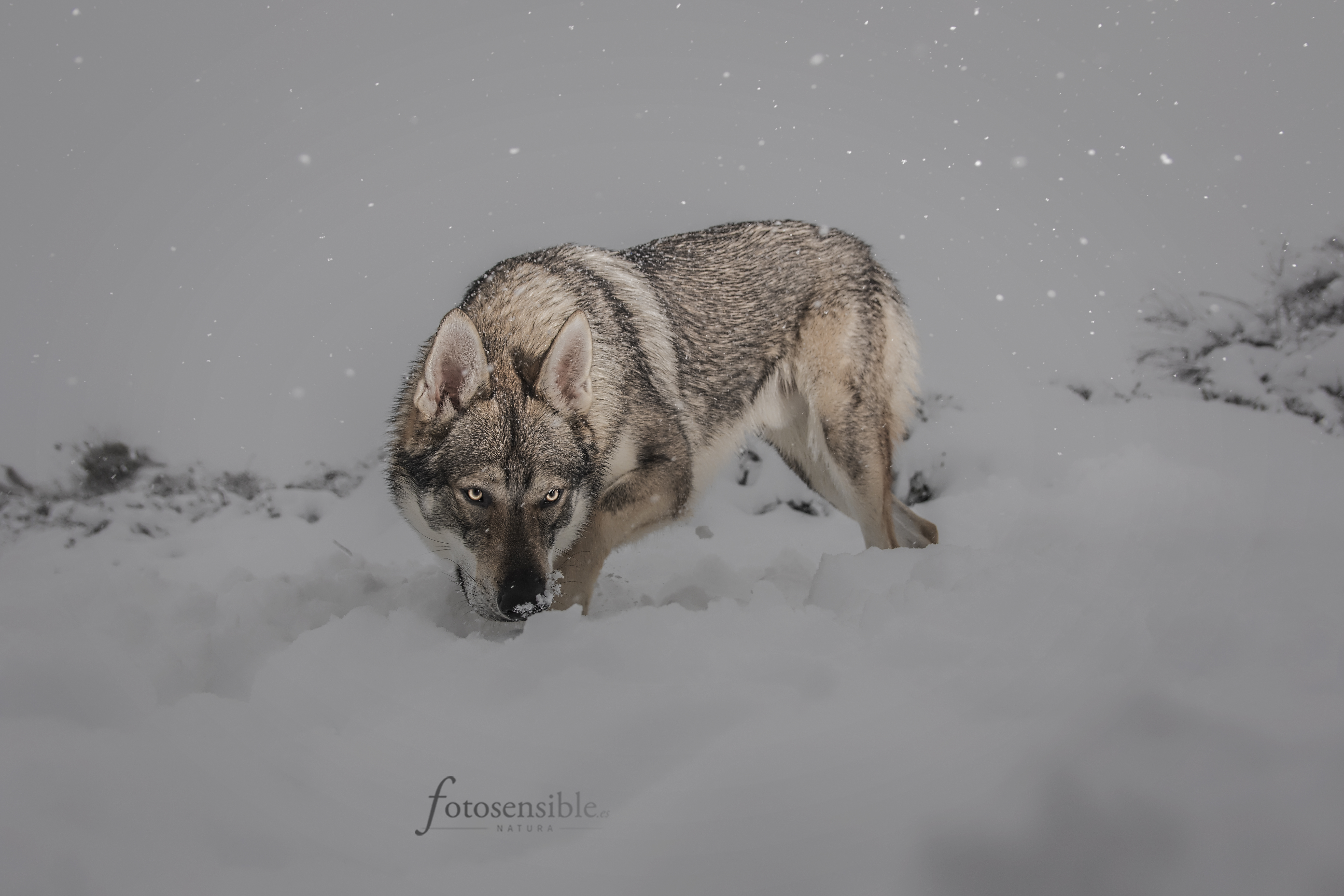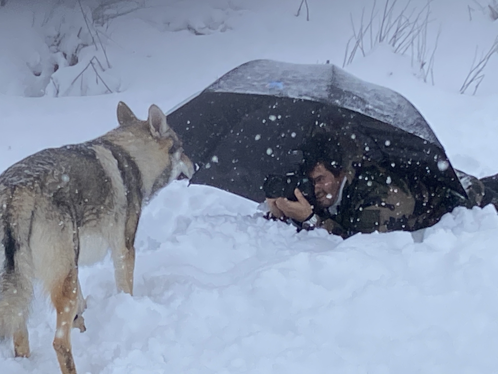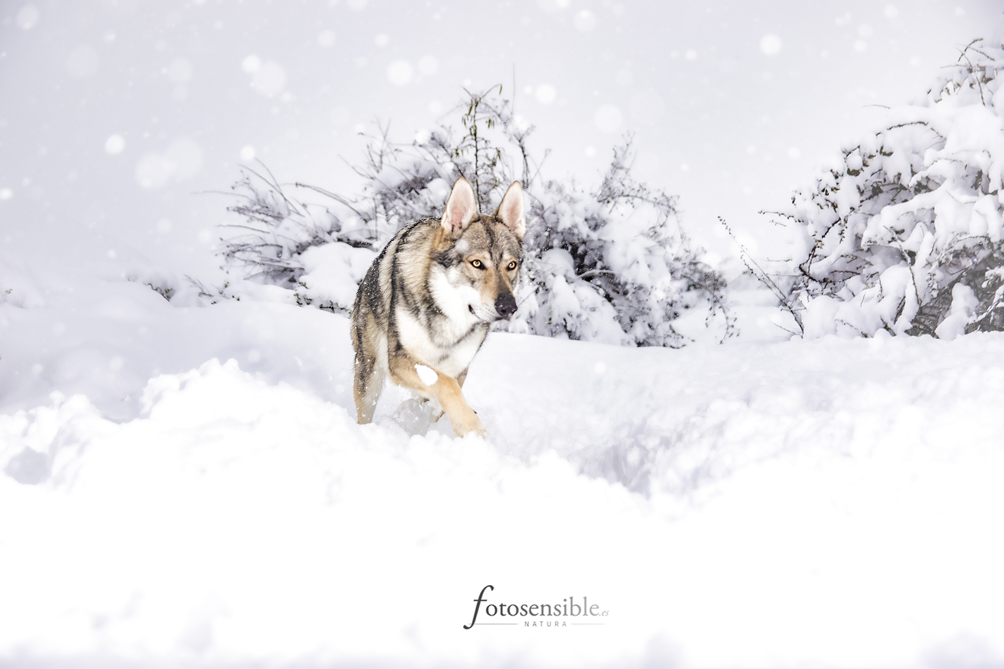 Ojalá “Ares” hubiera sido un lobo de verdad en medio de la nevada más grande que he vivido, pero no, es “solo” un enorme perro lobo checoslovaco. Soñar es gratis…