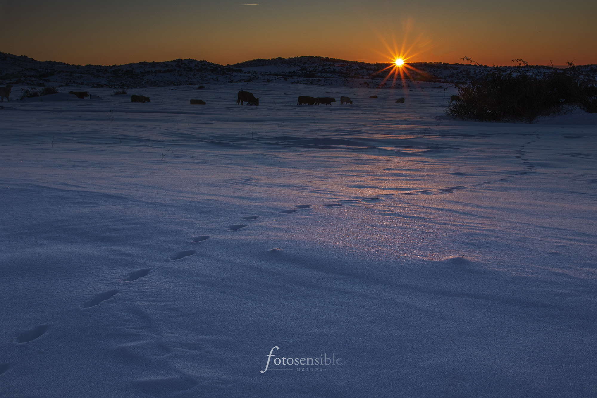 Cuando hay una nevada intensa, el campo se convierte en un lienzo blanco donde se pueden leer las huellas de la noche.