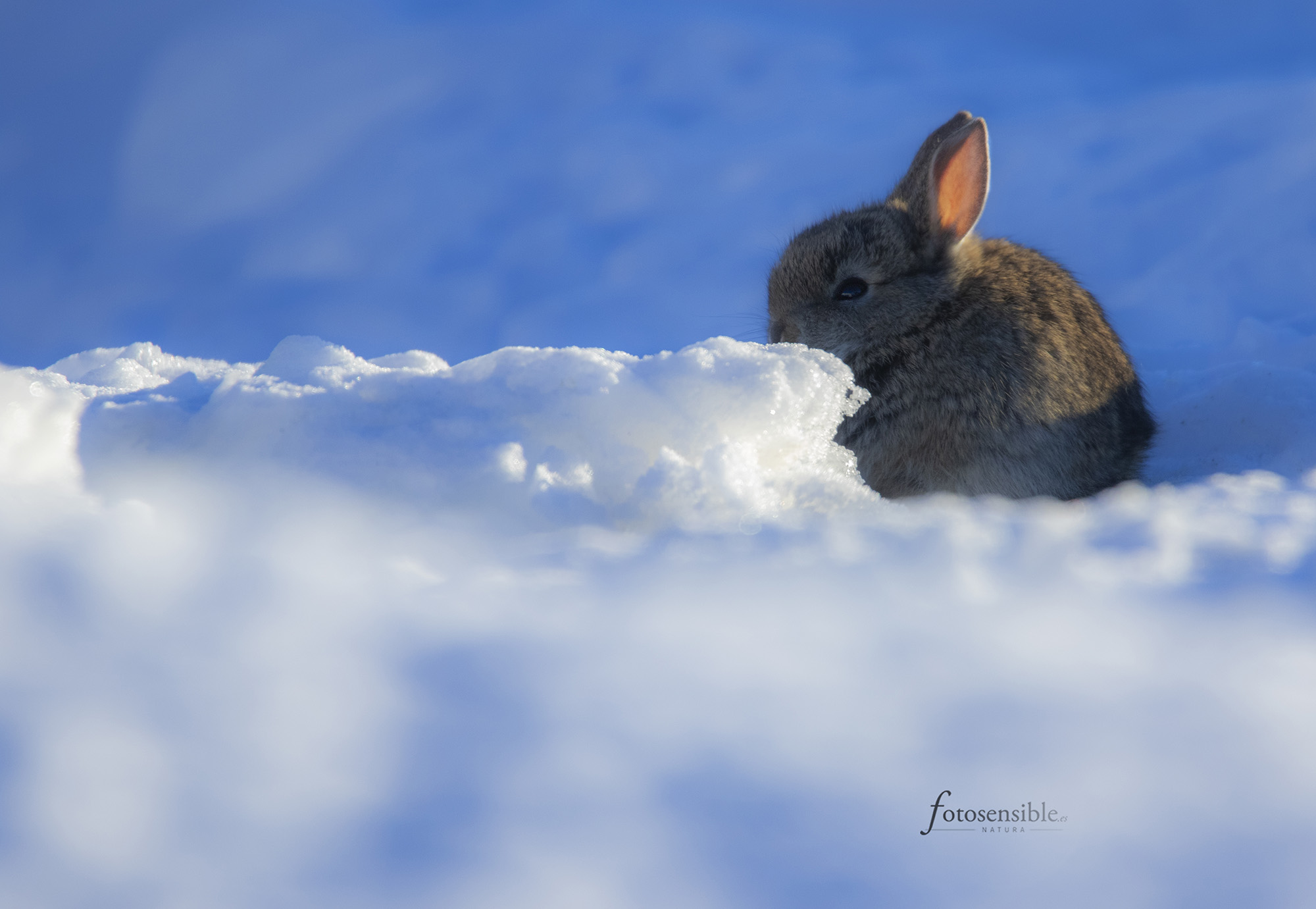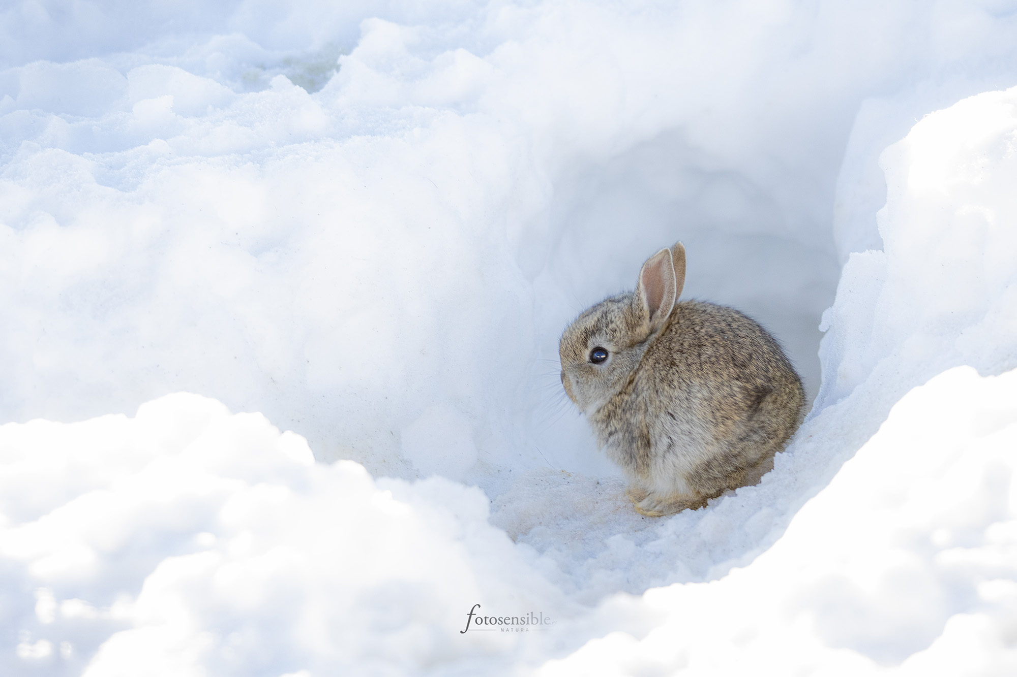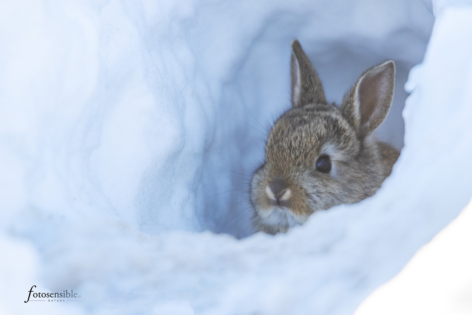 Especialmente para los más pequeños. Muchos animales no llegarán al próximo invierno… aunque no creo que sea el caso del simpático gazapillo que me dejó acercarme tanto, tan curioso como yo, pero eso sí, siempre cerca de la boca de su madriguera convertida ahora en iglú…