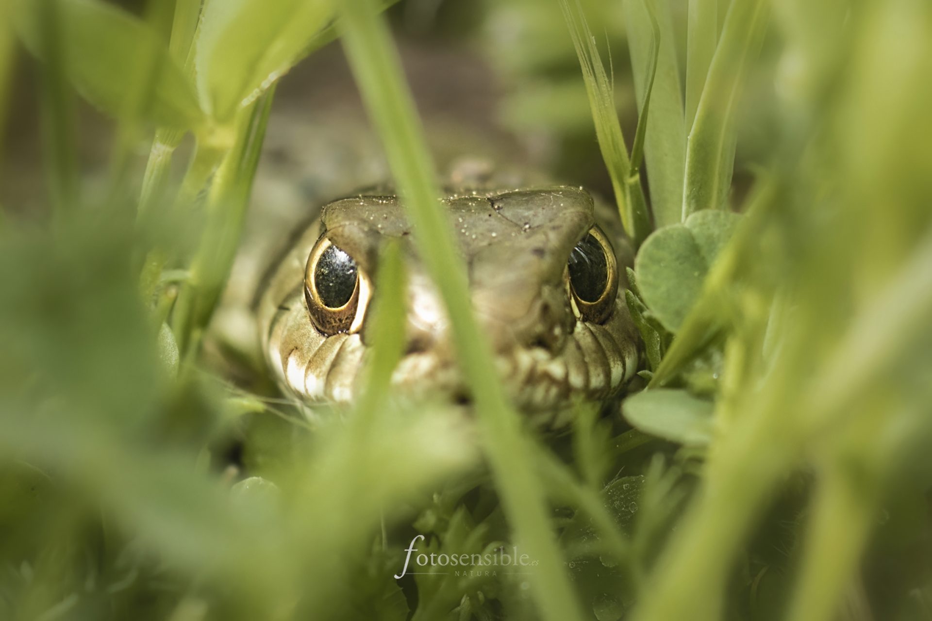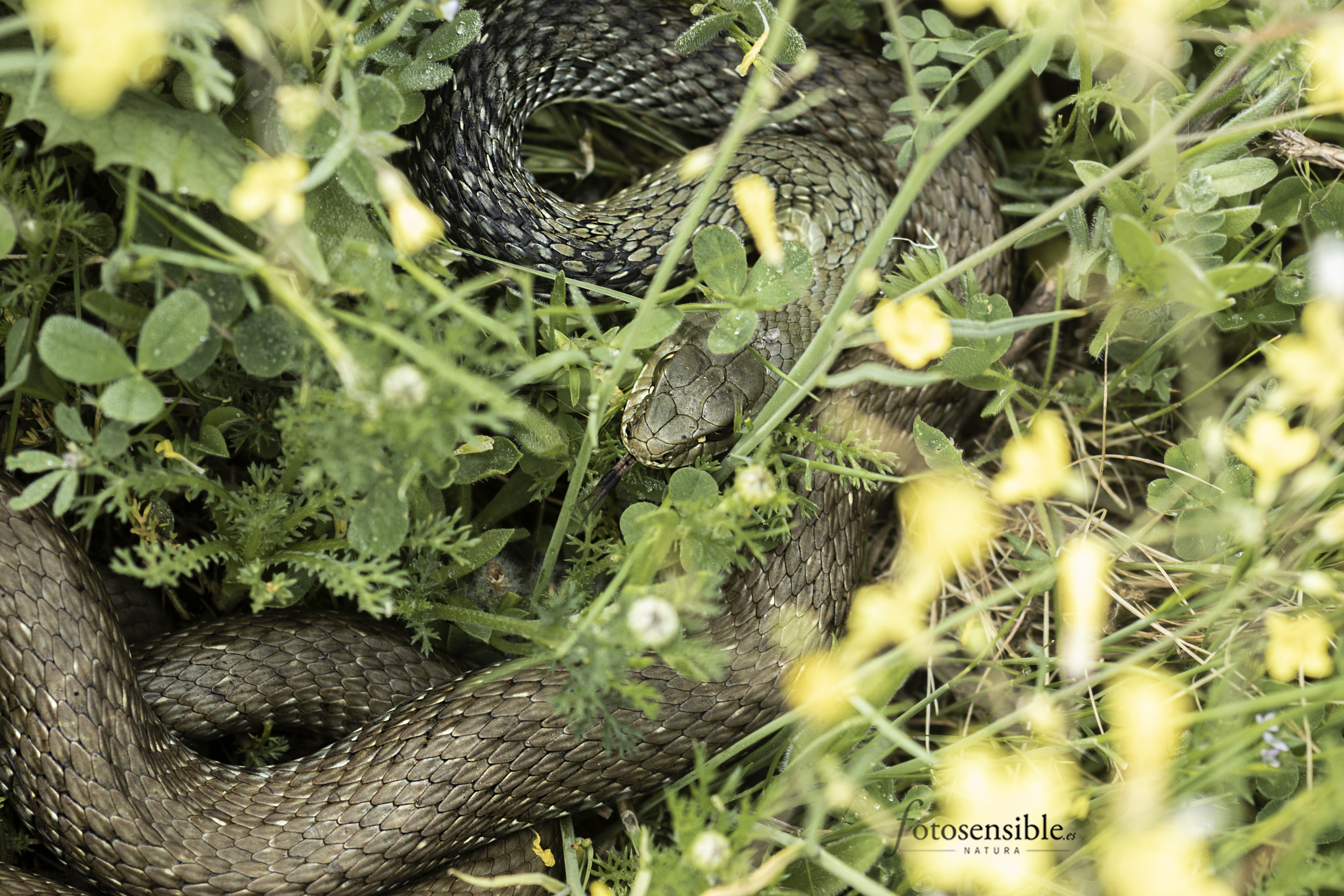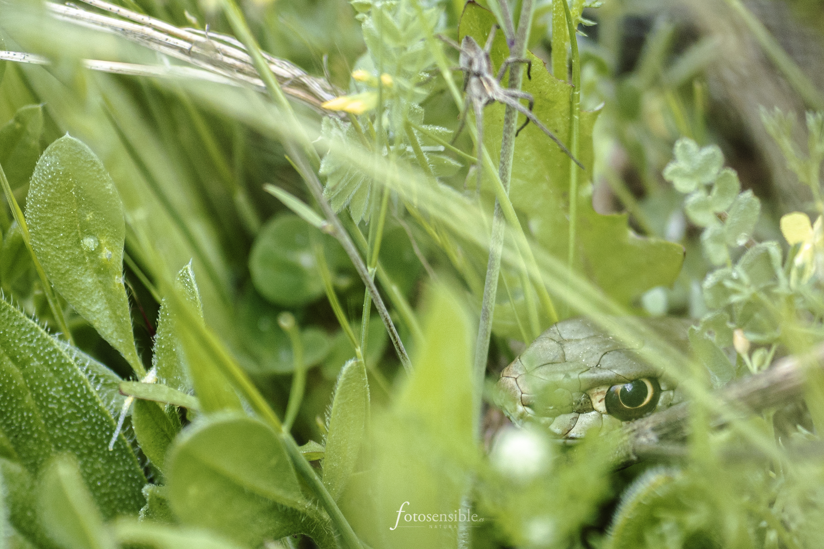 Buscando otra cosa, con la suerte de llevar la cámara, el día me regaló un encuentro con la culebra más grande e imponente de la península ibérica: la culebra de Montpellier (Malpolon monspessulanus), o “Bastarda“, que puede llegar a medir 2,5 m y engullir presas del tamaño de un conejo.