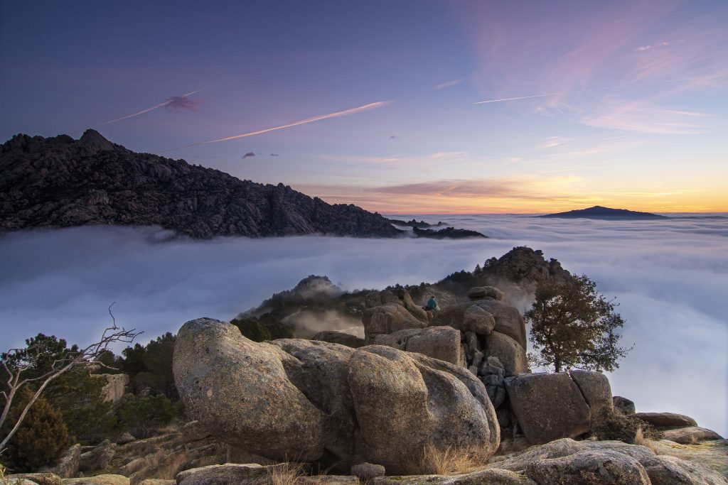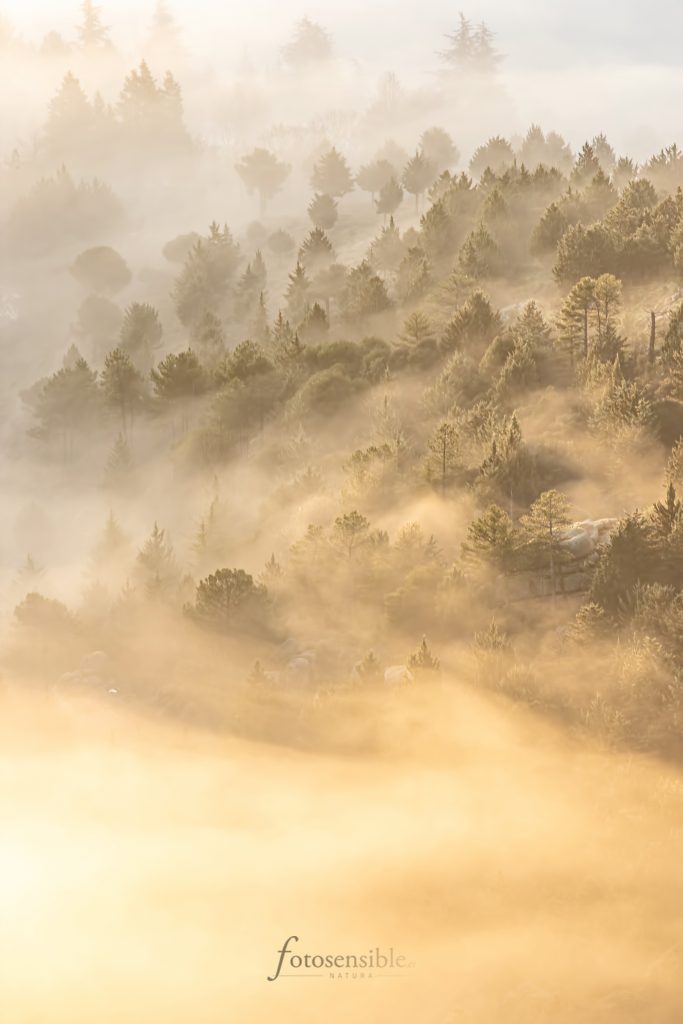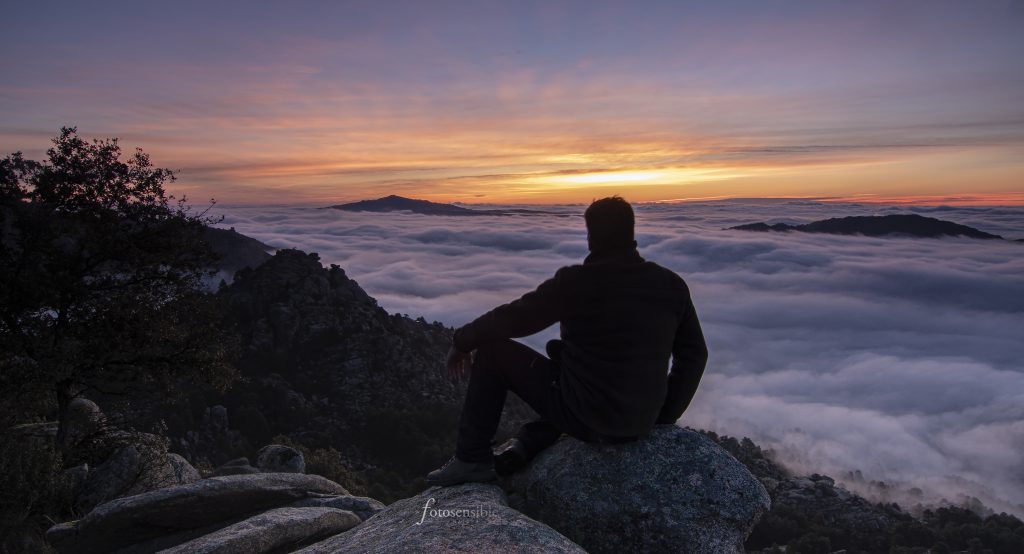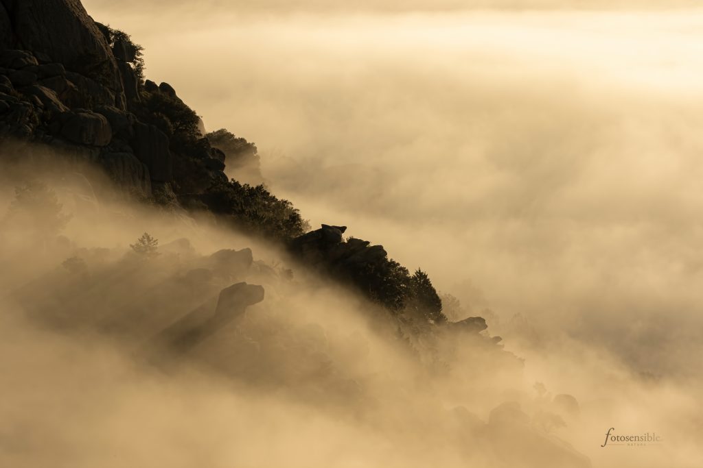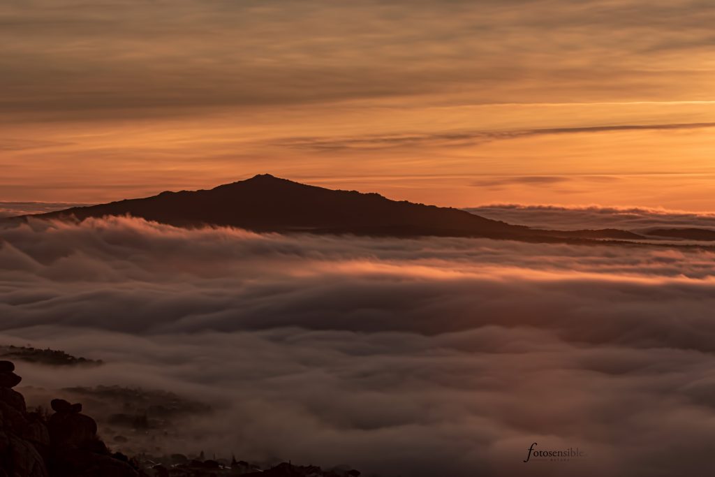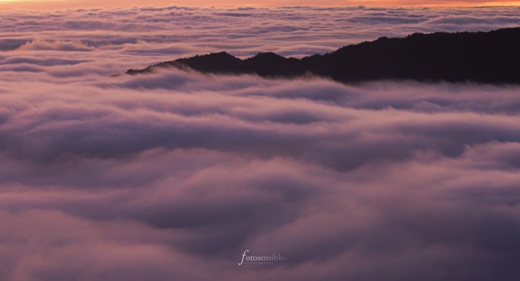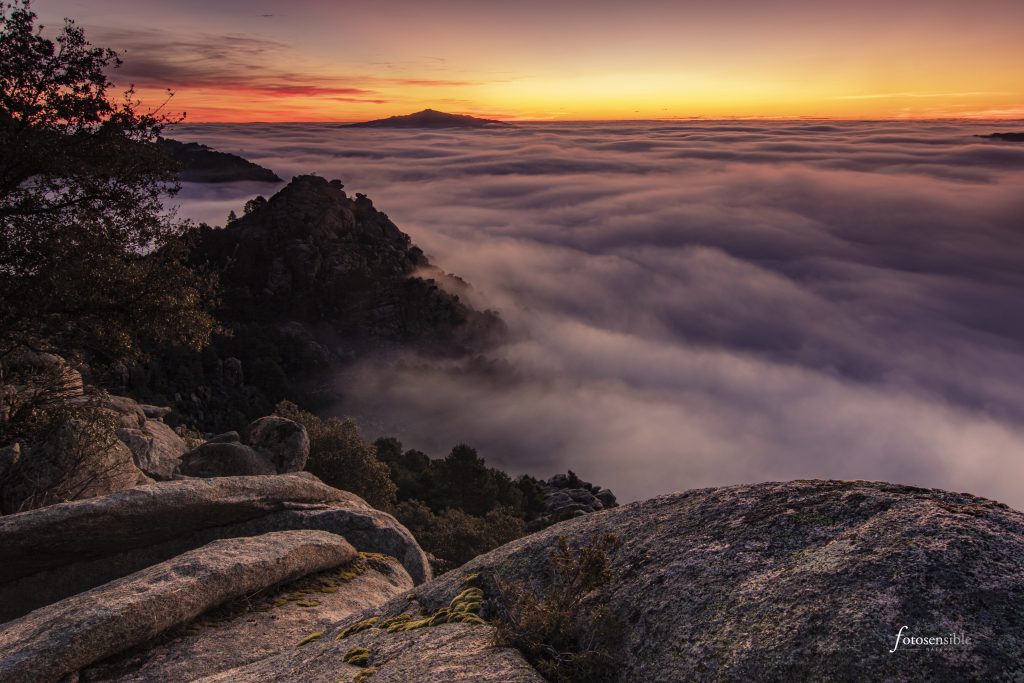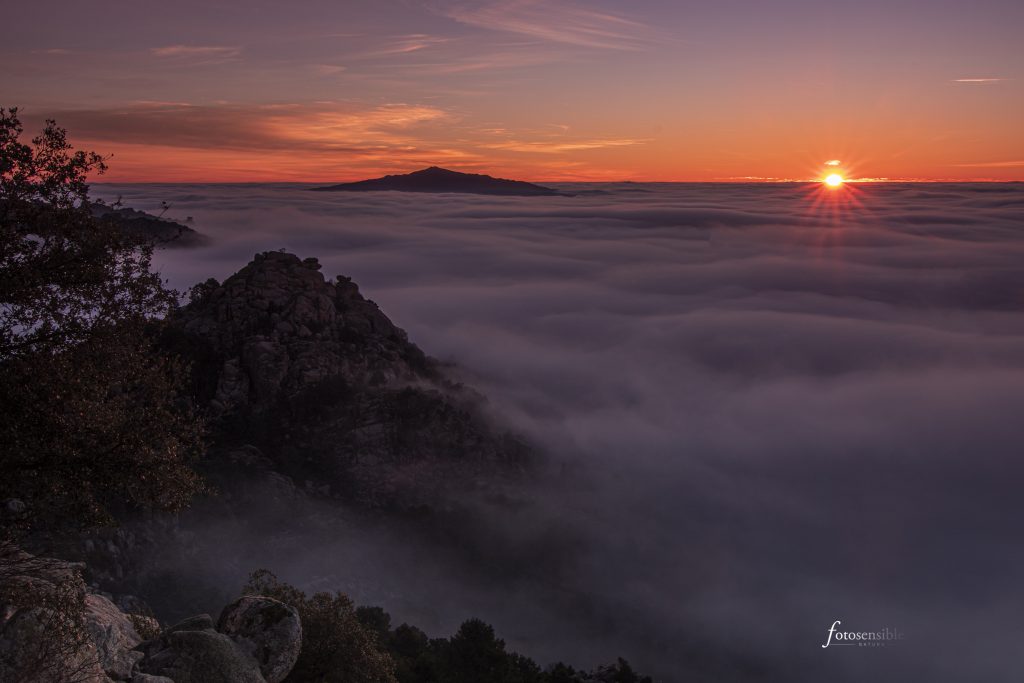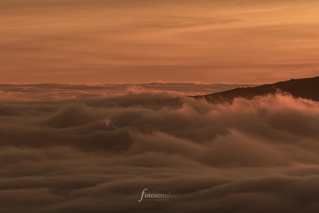El amanecer es probablemente el mejor momento del día. Durante una hora aproximadamente, el mundo sale de las sombras y la luz empieza a acariciar todas las formas que encuentra a su paso. Tenue y tímidamente, durante esa hora el mundo va despertando envuelto en un ambiente mágico. Este ambiente adquiere tintes espectaculares cuando además se sumerge en un mar de nubes.