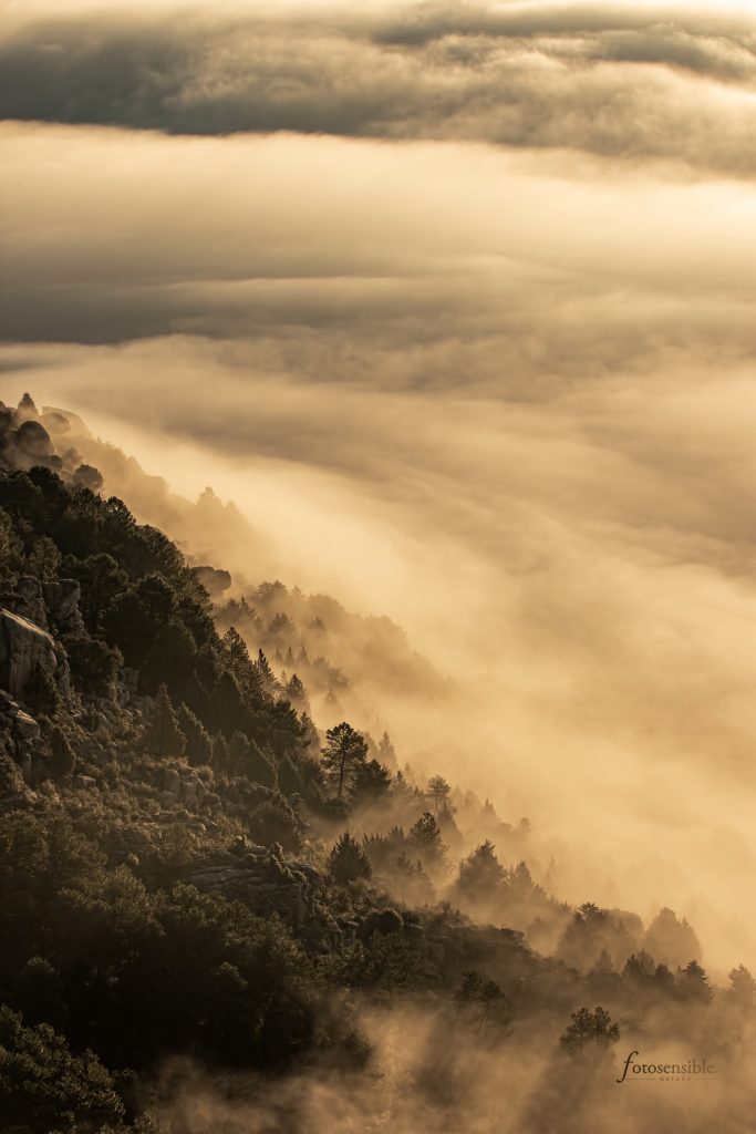 A medida que el sol asciende, los rayos se van filtrando entre la cortina de nubes, creando nuevos contornos, nuevos volúmenes, formas inesperadas y paisajes propios de la Tierra Media.